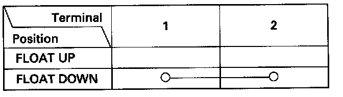 3. Check for continuity between the terminals in each float position according to the table.