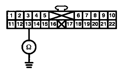 6. Is there continuity from terminal 13 of the security control unit connector to ground?