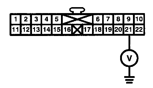 7. With the security control unit connector reconnected, is there battery voltage at terminal 21 of the security control unit connector?