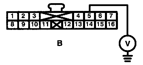 8. Is there battery voltage at terminal 5 of the keyless entry harness connector (B)?