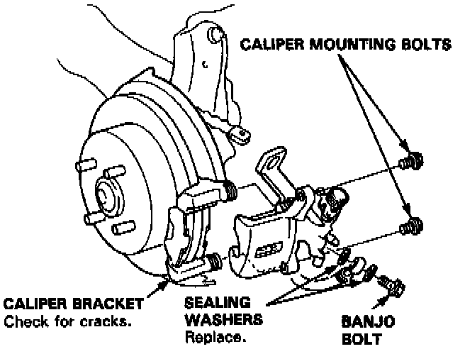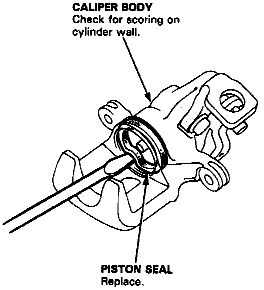 CAUTION: Be careful not to damage the inside of the caliper cylinder during caliper disassembly.