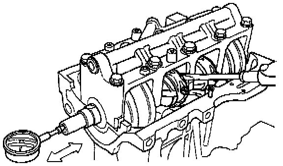 - If end play is excessive, inspect the thrust washers and thrust surface on the crankshaft. Replace parts as necessary.