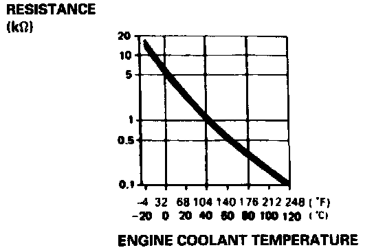 DESCRIPTIONThe ECT Sensor is a temperature dependant resistor (thermistor). The resistance of the thermistor decreases as the engine coolant temperature increases as shown above.