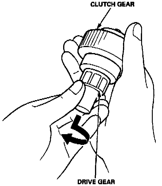 2. Rotate the overrunning clutch both ways. Does it lock in one direction and rotate smoothly in reverse? If it does not lock in either direction or it locks in both directions, replace it.