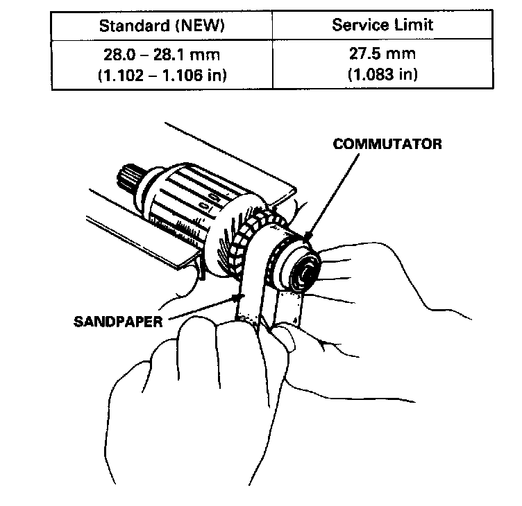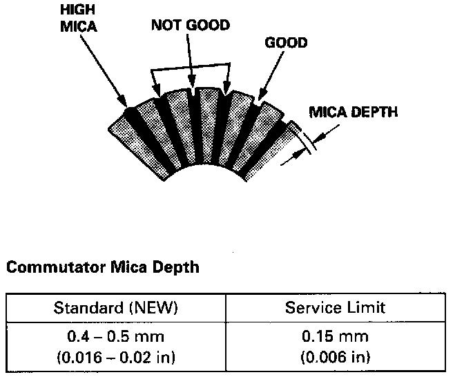 - If the commutator runout is within the service limit, check the commutator for carbon dust or brass chips between the segments.