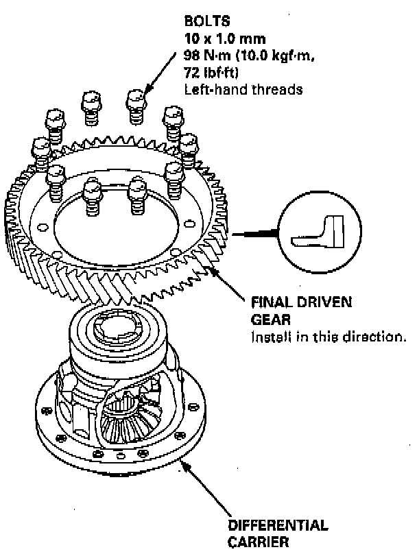 NOTE: The final driven gear bolts have left-hand threads.