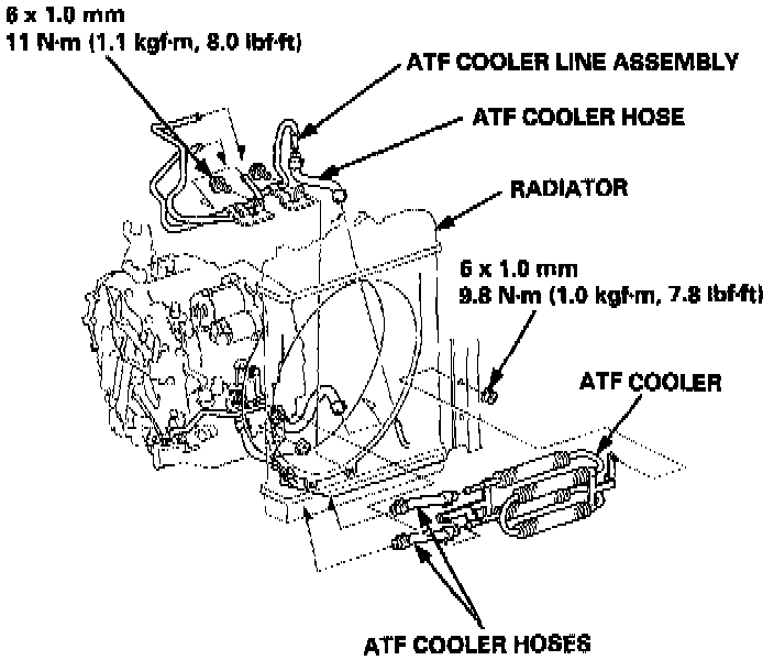 INSTALLATION1. Install the Automatic Transmission Fluid (ATF) cooler, ATF cooler line assembly and the ATF cooler hoses.