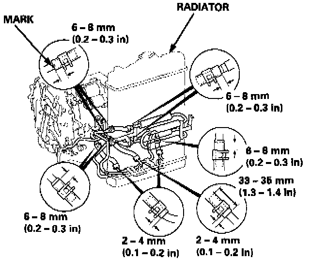 2. Connect the ATF cooler hoses to the ATF cooler lines and ATF cooler, and secure them with the clips as shown.