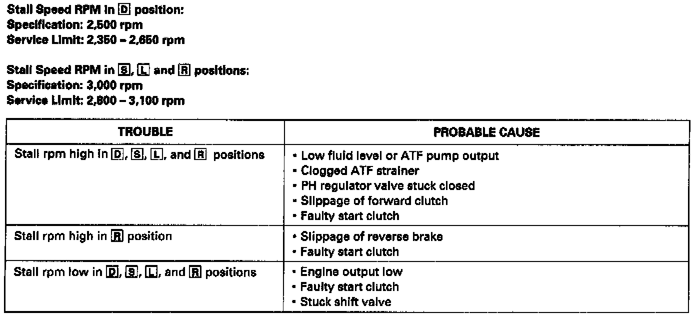 - To prevent transmission damage, do not test stall speed for more than 10 seconds at a time.