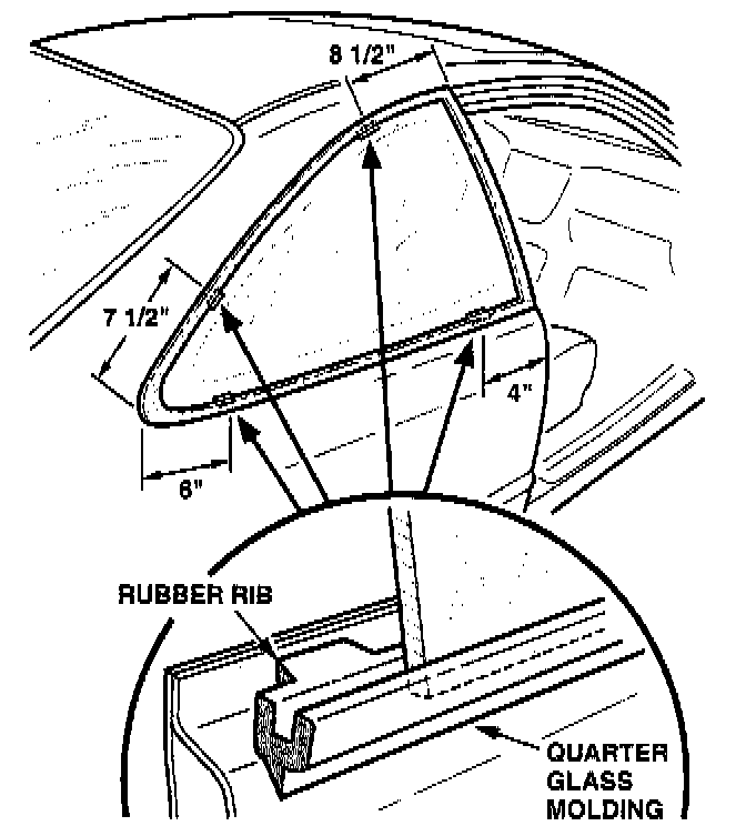 1. Locate the rubber ribs on the inside edge of the quarter glass molding.
