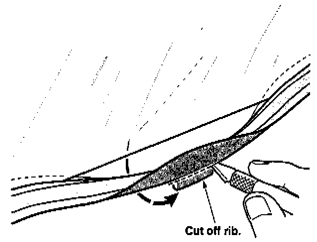 Cut off the four rubber ribs of the affected rear quarter glass molding.