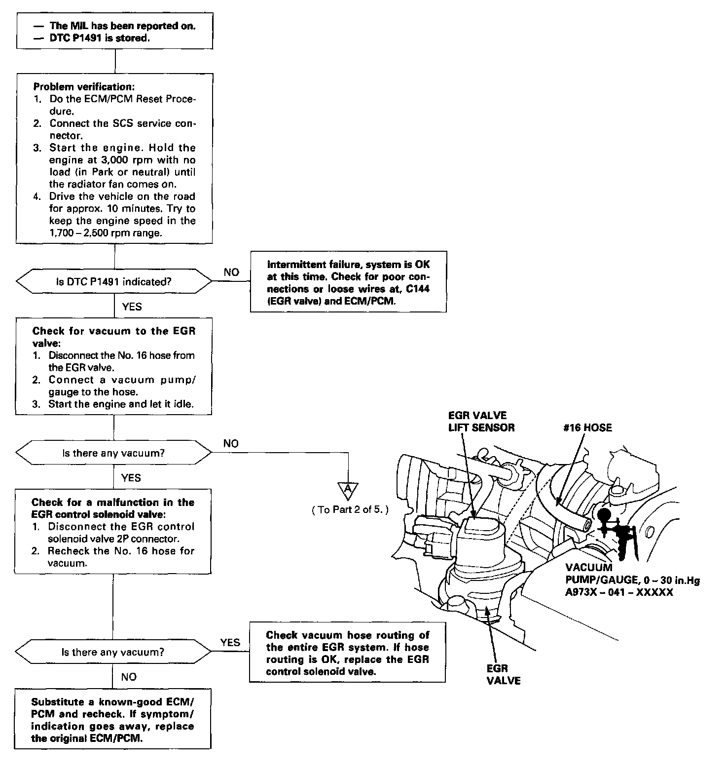The scan tool indicates Diagnostic Trouble Code (DTC) P1491: