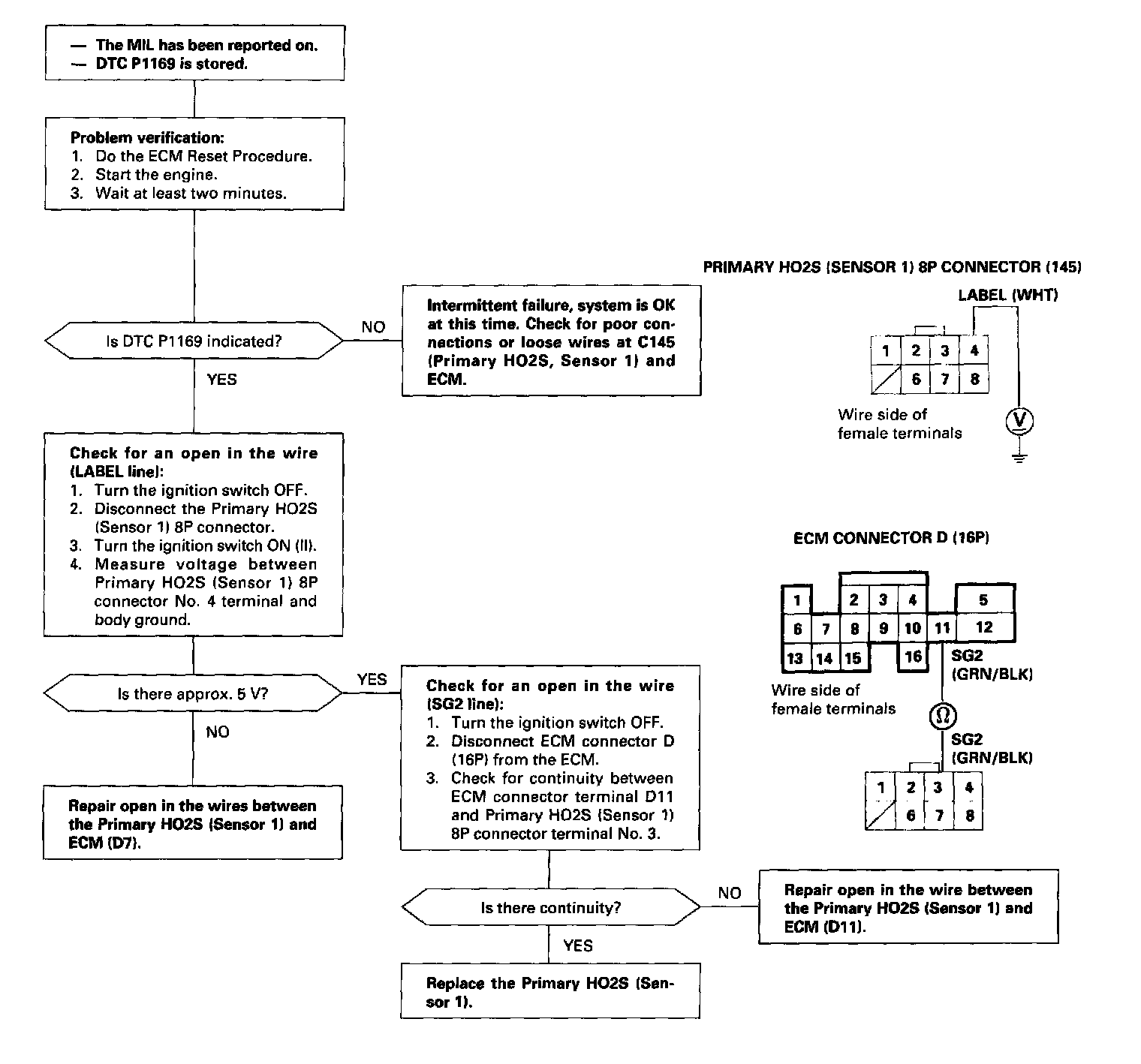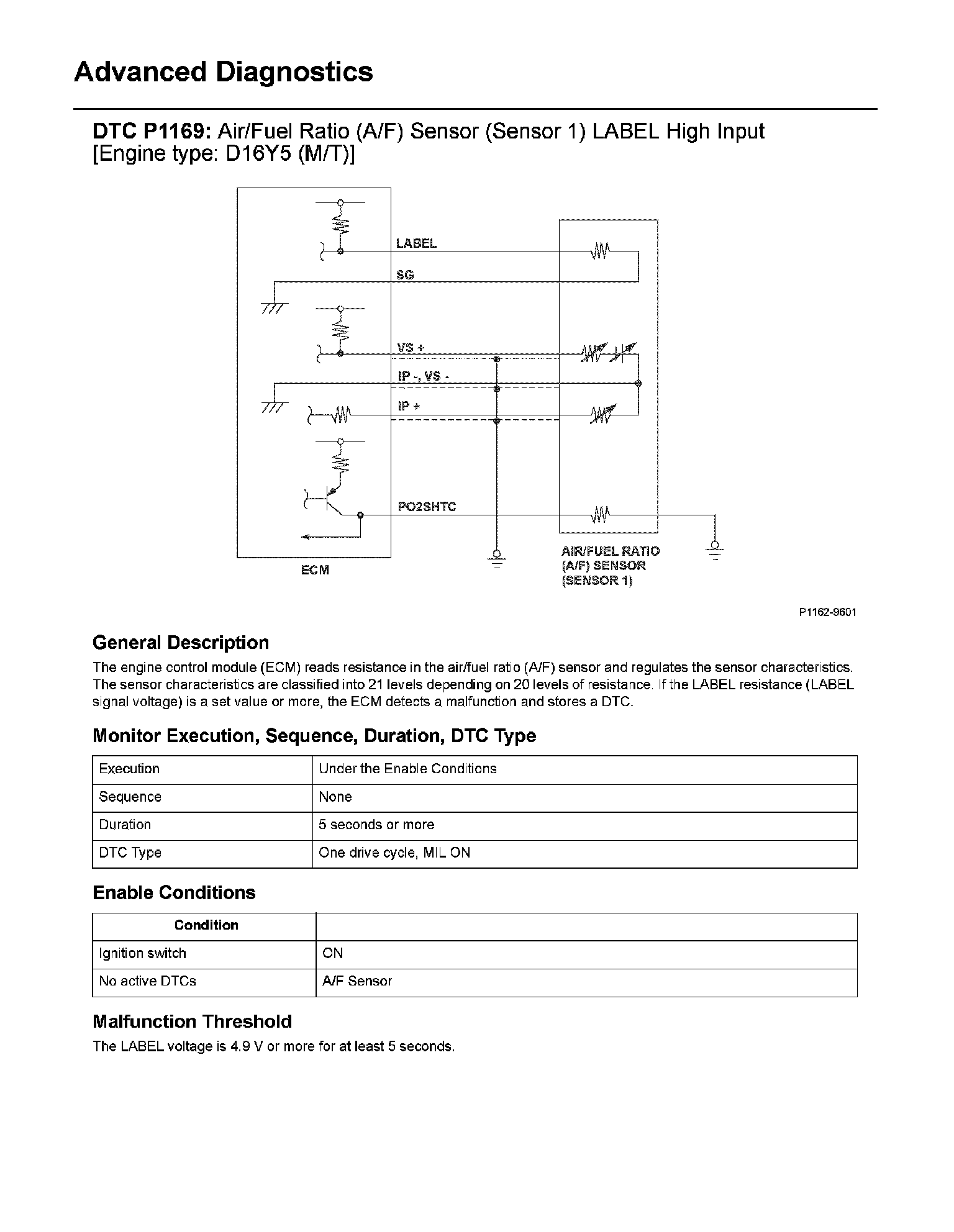 The scan tool indicates Diagnostic Trouble Code (DTC) P1169: