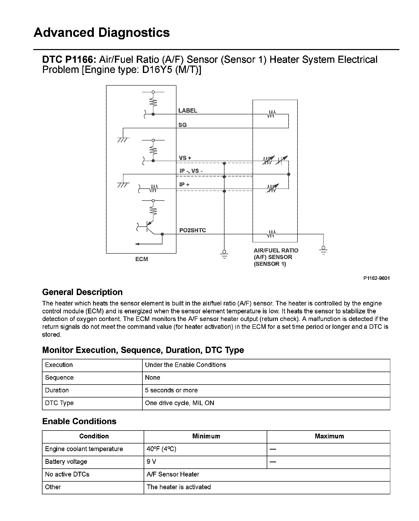 The scan tool indicates Diagnostic Trouble Code (DTC) P1166:
