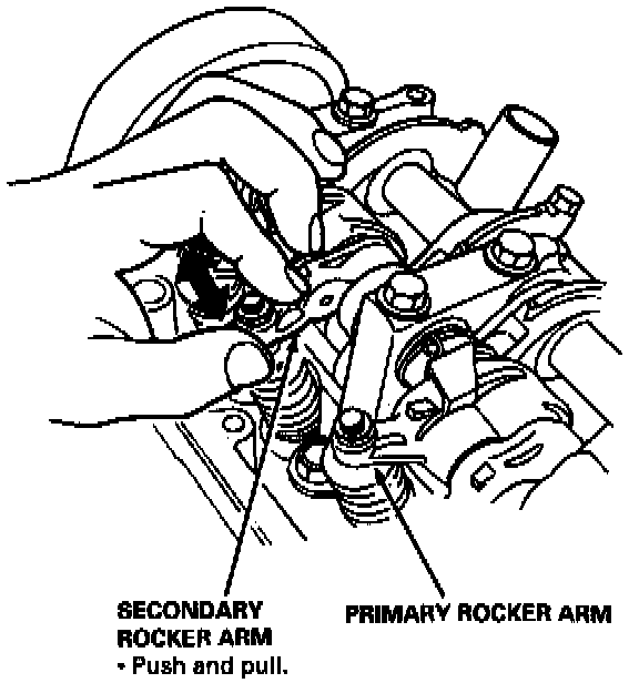 4. Check that the intake secondary rocker arm moves independently of the primary intake rocker arm.