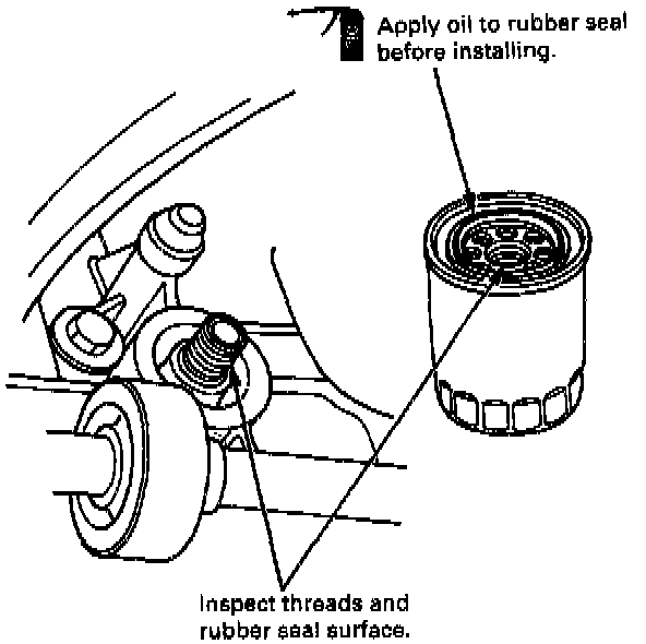 2. Inspect the threads and rubber seal on the new filter. Wipe off the seat on the engine block, then apply a light coat of oil to the new filter's rubber seal.