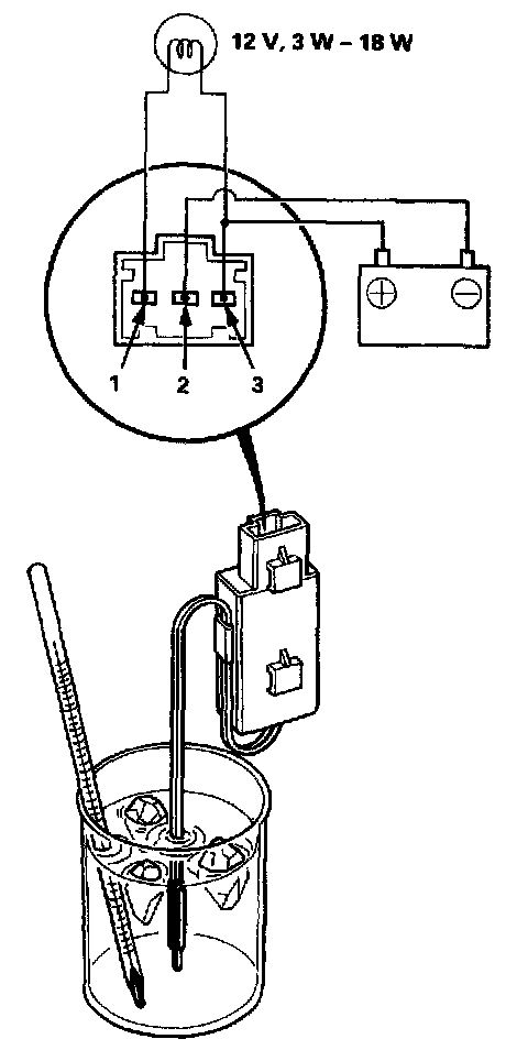 1. Remove the A/C thermostat.2. Connect battery power to the No.3 terminal, ground the No.2 terminal, and connect a test light between the No.1 and No.3 terminals.