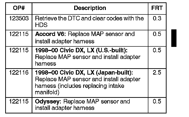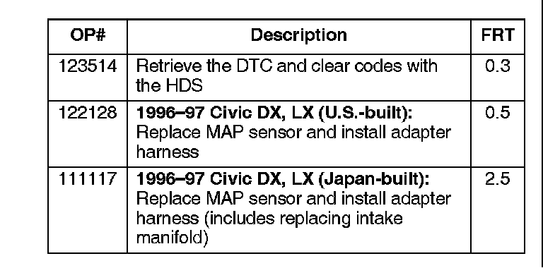 Replace the MAP sensor. For Japan-built Civics, also replace the intake manifold.