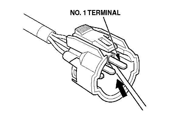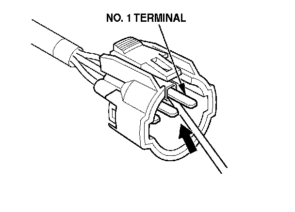 5. Insert the No. 1 terminal (YEL/RED wire) into the left (No. 1) cavity of the new 3P connector.