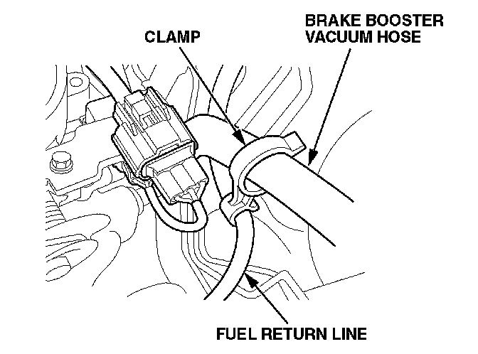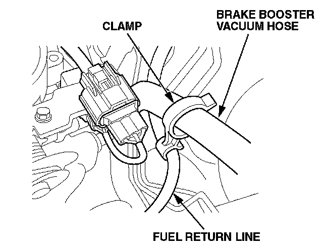14. Models with cruise control: Reposition the vacuum hose and its clamp. Make sure the brake booster vacuum hose and the fuel return line do not interfere with each other.