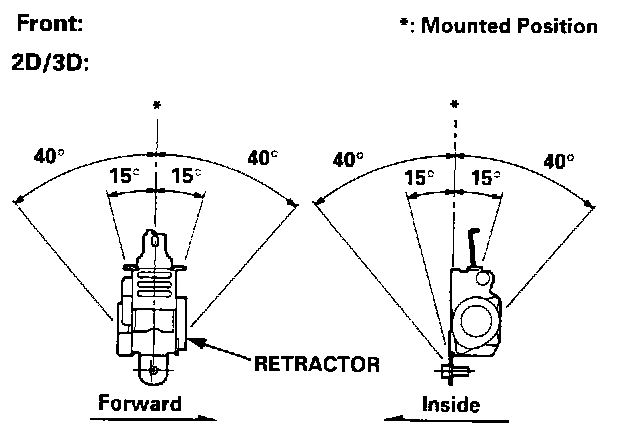 2. Make sure that the seat belt does not lock when the retractor is leaned slowly up to 150 from the mounted position. The seat belt should lock when the retractor is leaned over 400.
