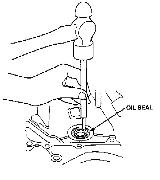 Install the oil seal in the flywheel housing using the special tools as shown.