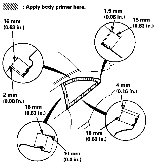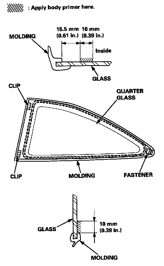 - Never touch the primed surfaces with your hands. If you do, the adhesive may not bond to the quarter glass properly, causing a leak after the quarter glass is installed.
