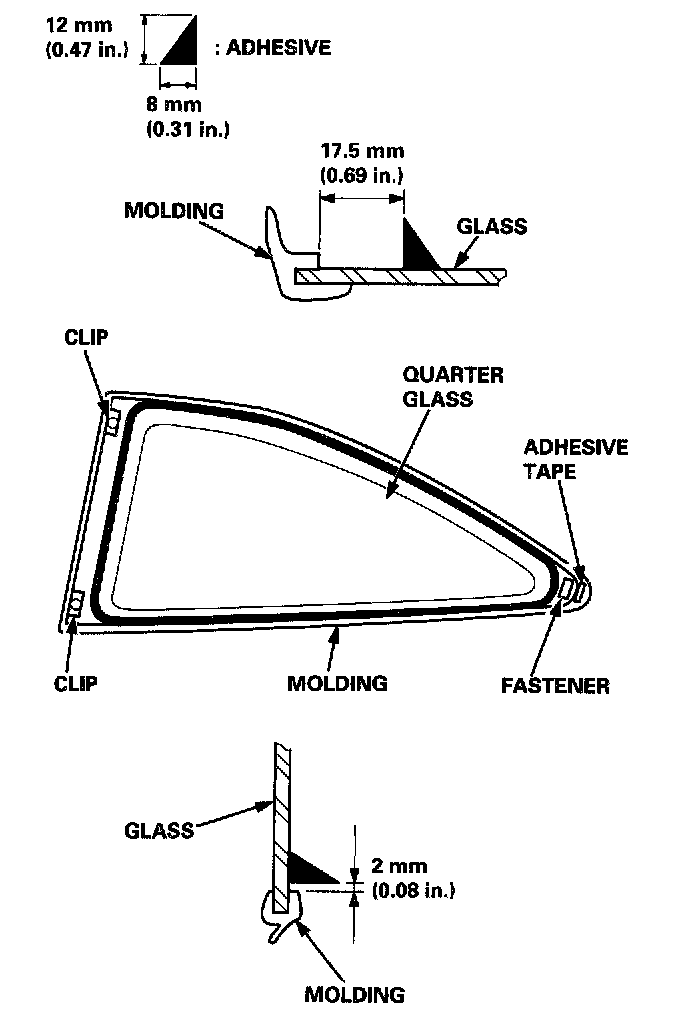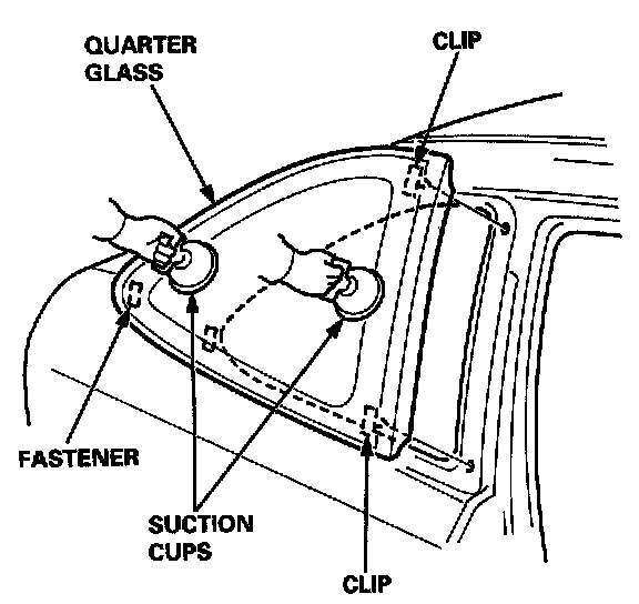 NOTE: Let the car stand for at least four hours after quarter glass installation. If the car has to be used within the first four hours, it must be driven slowly.