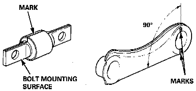 2. Mark a scribe line on the upper arm inner bushing so that it is in line with the bolt mounting surface.