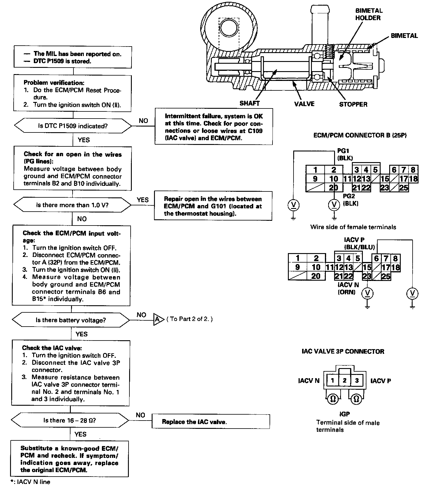The scan tool indicates Diagnostic Trouble Code (DTC) P1509: A problem in the idle Air Control (IAC) valve circuit.