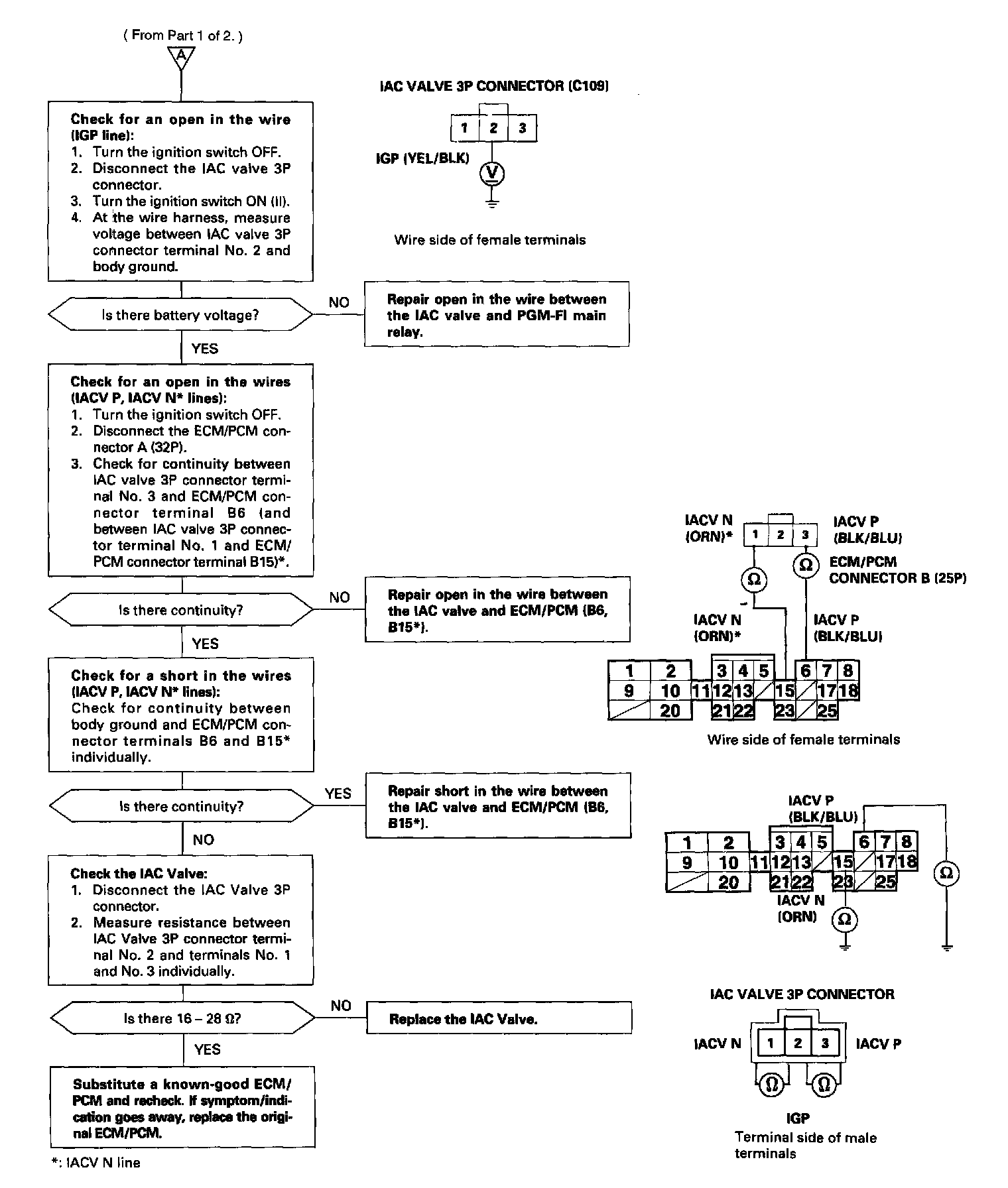 The (Rotary) IAC Valve changes the amount of air bypassing the throttle body in response to a current signal from the ECM/PCM in order to maintain the proper idle speed.