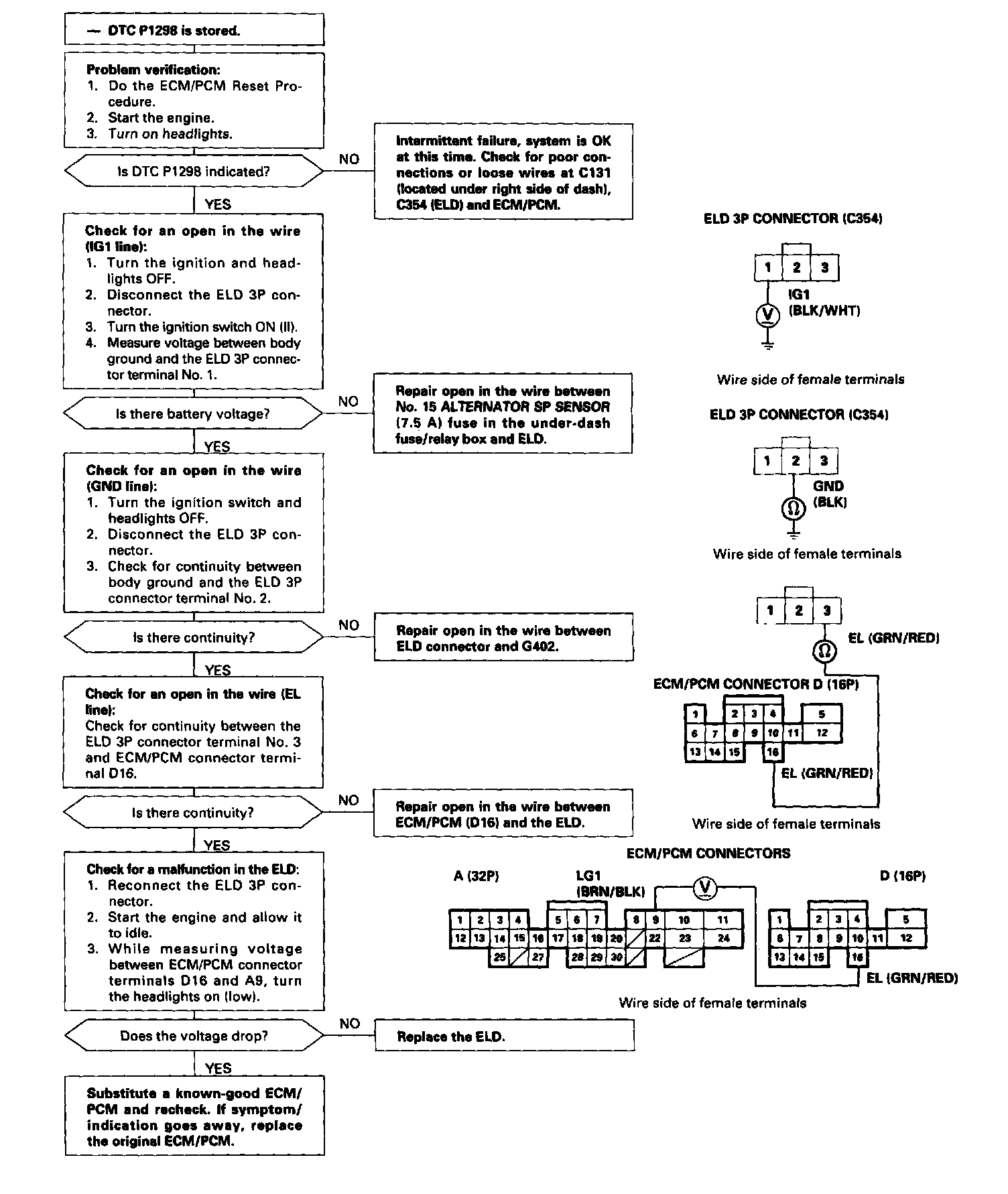 The scan tool indicates Diagnostic Trouble Code (DTC) P1298: