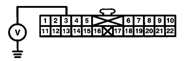 6. Is there approximately 5 volts at terminal 22 of the security control unit connector?