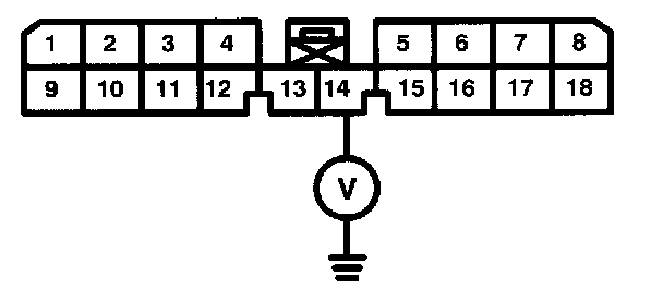 7. Is there approximately 5 volts at terminal 12 ('96-'98 models) or 14 ('99 models) of the keyless receiver unit ('96-'98 models) or the keyless door lock control unit ('99 models)?