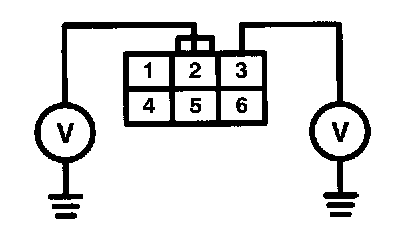 2. Is there battery voltage at terminals 2 and 3 of the security starter cut relay connector, when the ignition switch is in the START (III) position?
