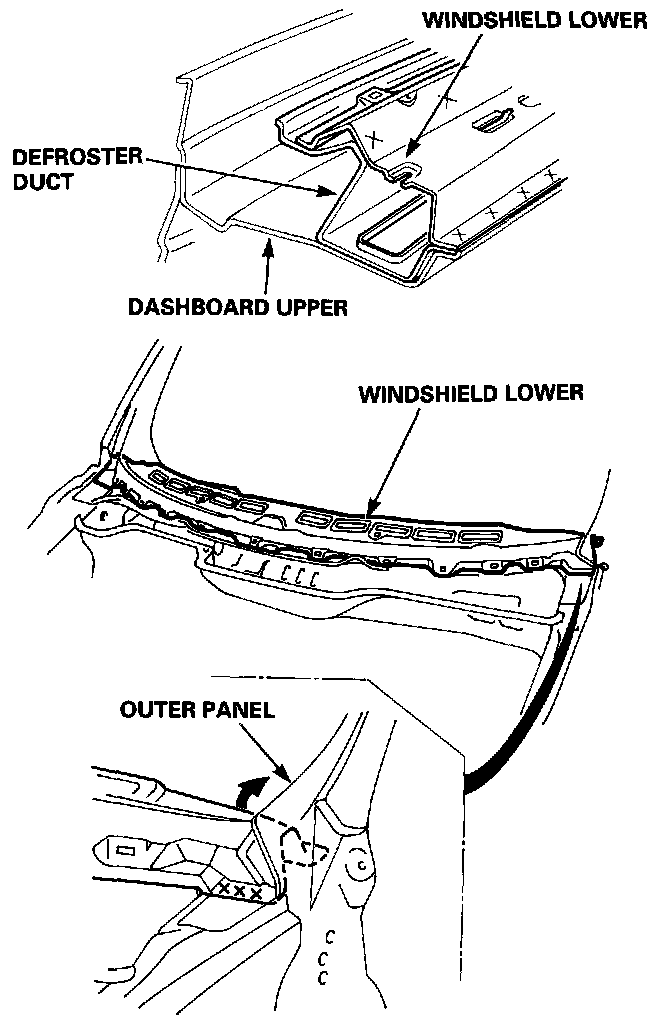 10. Apply anti-rust agent to the inside of the windshield lower and dashboard upper.