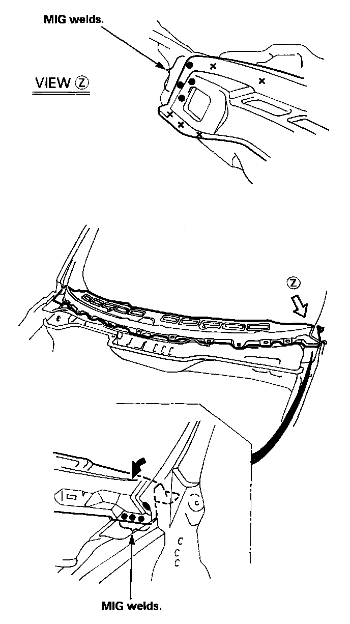 - Level off and finish the burrs of the pried-off spot welds with a sander