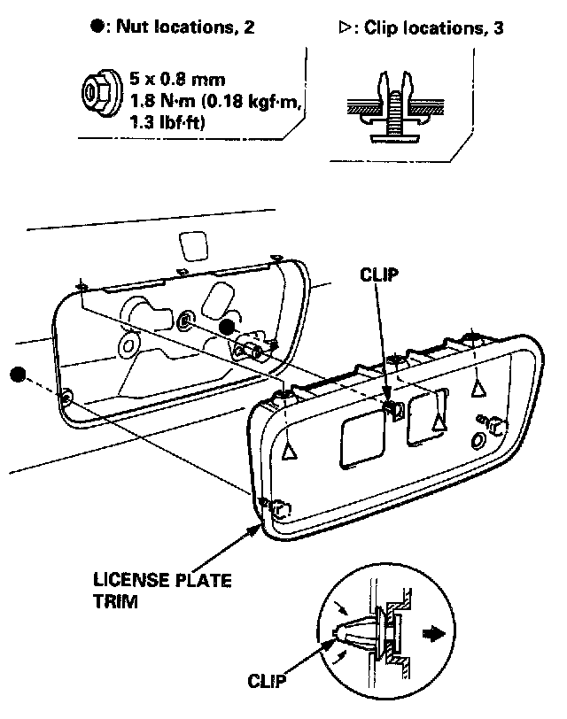 3. Remove the nuts and clips, and detach the clip, then remove the license plate trim.