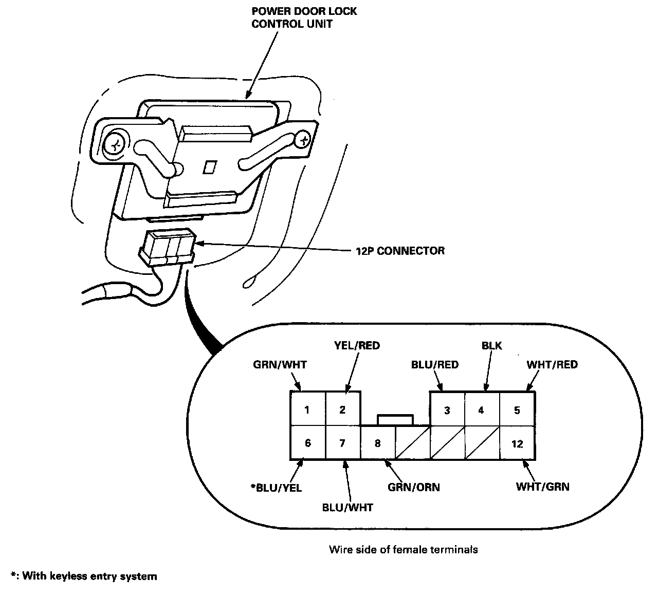 1. Remove the driver's door panel.2. Disconnect the 12P connector from the control unit.