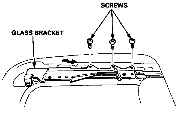 8. Using the moonroof wrench, move the glass bracket to the position where the moonroof normally pivots down, and remove the screws.