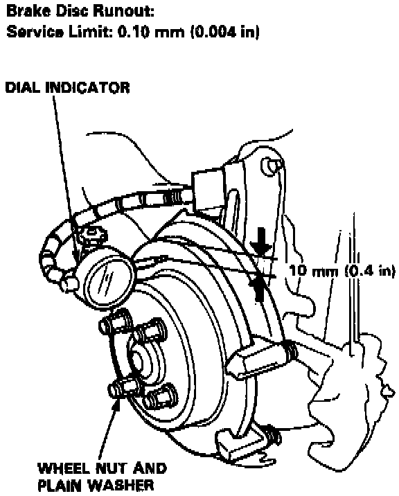 NOTE: A new disc should be refinished if its runout is greater than 0.10 mm (0.004 inch).