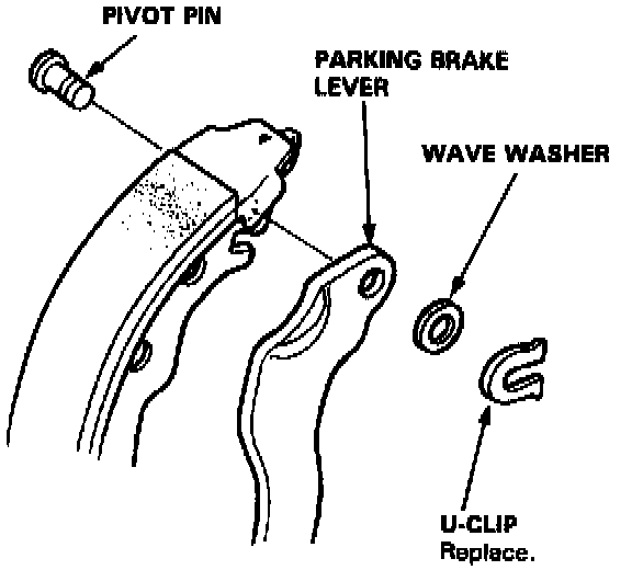 6. Remove the wave washer, parking brake lever, and pivot pin from the brake shoe by removing the U-clip.