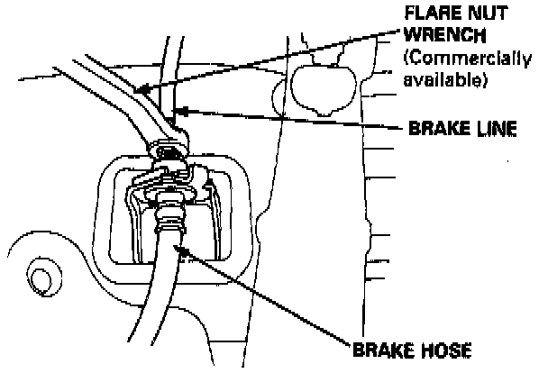 2. Disconnect the brake hose from the brake line using a 10 mm flare nut wrench.