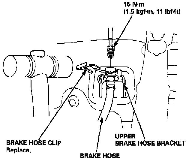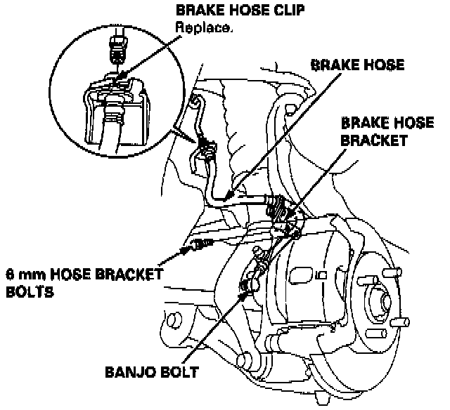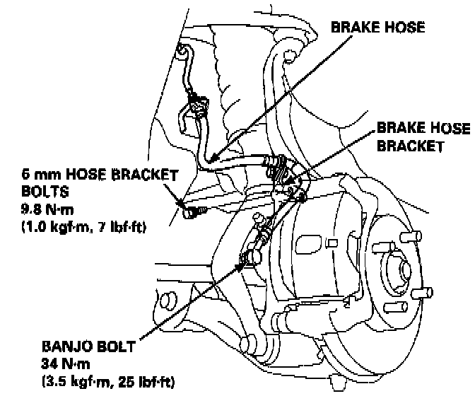 - Check the brake hose and line joint for leaks, and tighten if necessary.