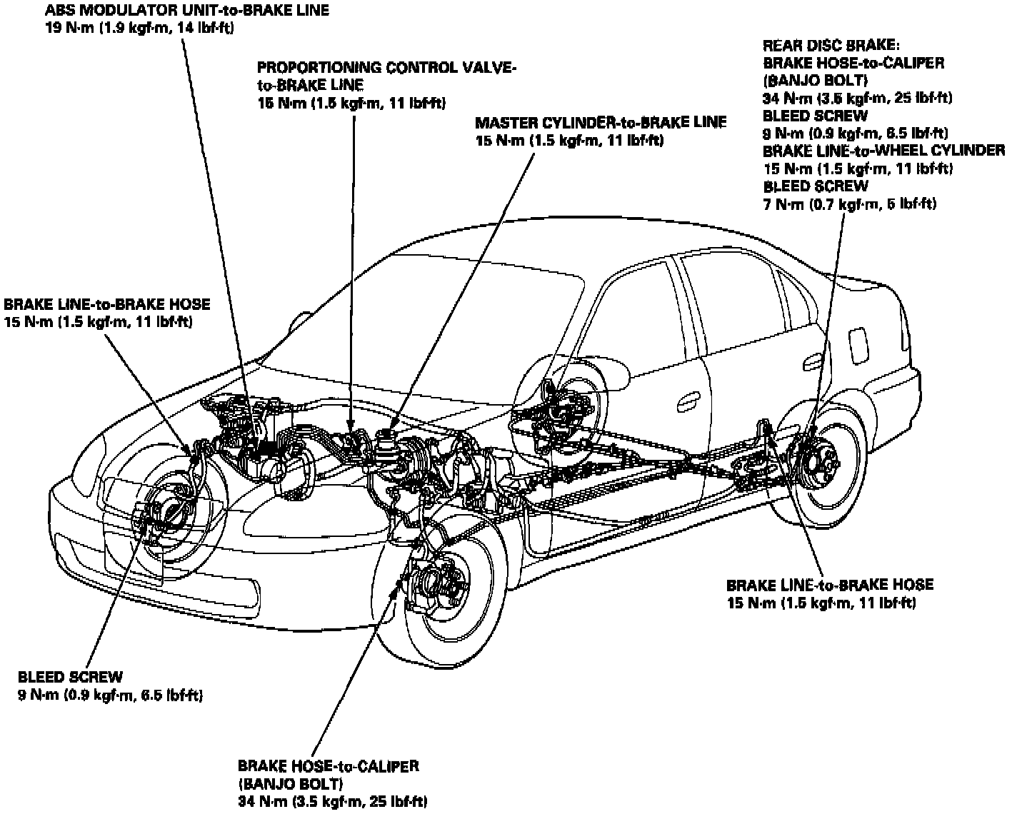 2. Check the brake lines for damage, rusting, and leakage. Also check for bent brake lines.