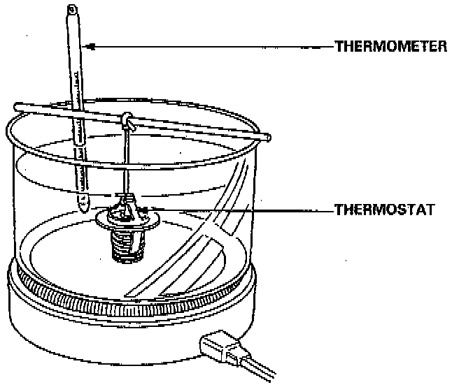 1. Suspend the thermostat in a container of water as shown.