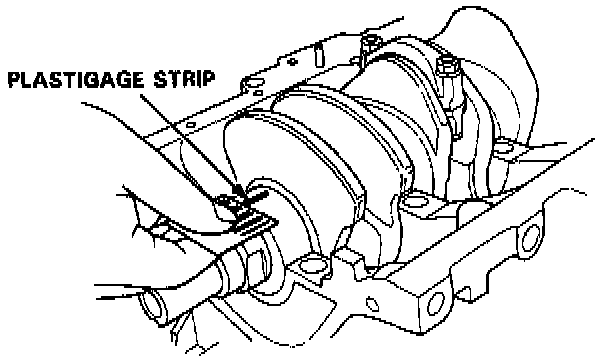NOTE: If the engine is still in the car when you bolt the main cap down to check clearance, the weight of the crankshaft and flywheel will flatten the plastigage further than just the torque on the cap bolt, and give you an incorrect reading. For an accurate reading, support the crank with a jack under the counterweights and check only one bearing at a time.