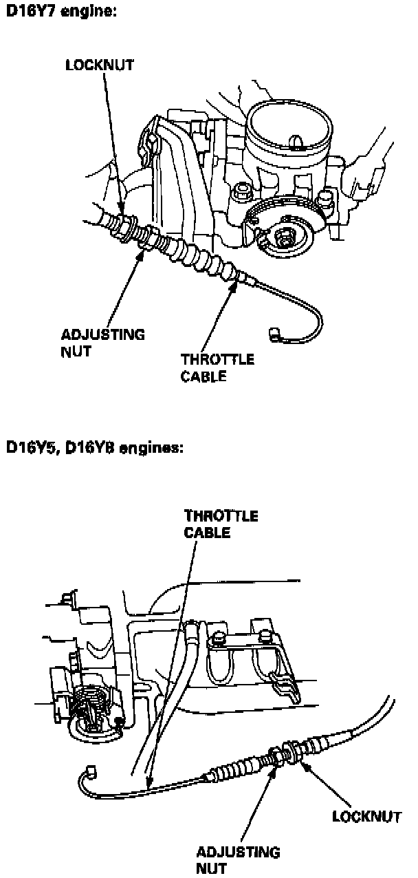 8. Remove the throttle cable by loosening the locknut, then slip the cable end out of the throttle linkage.