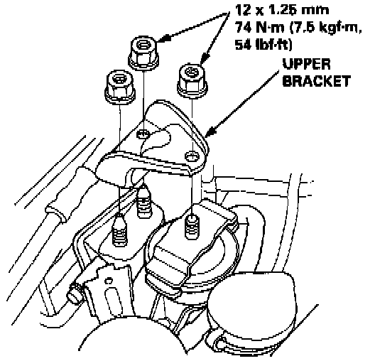 - Use a jack to support the engine before the upper bracket is removed.