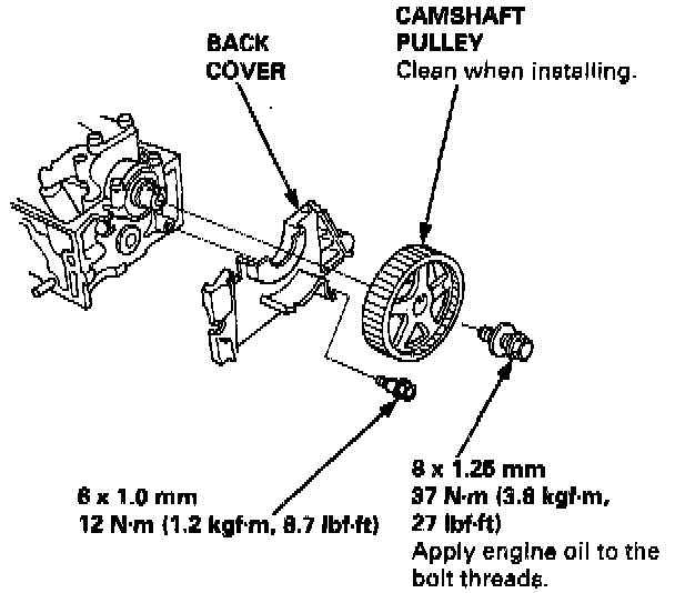 19. Remove the camshaft pulley and back cover.
